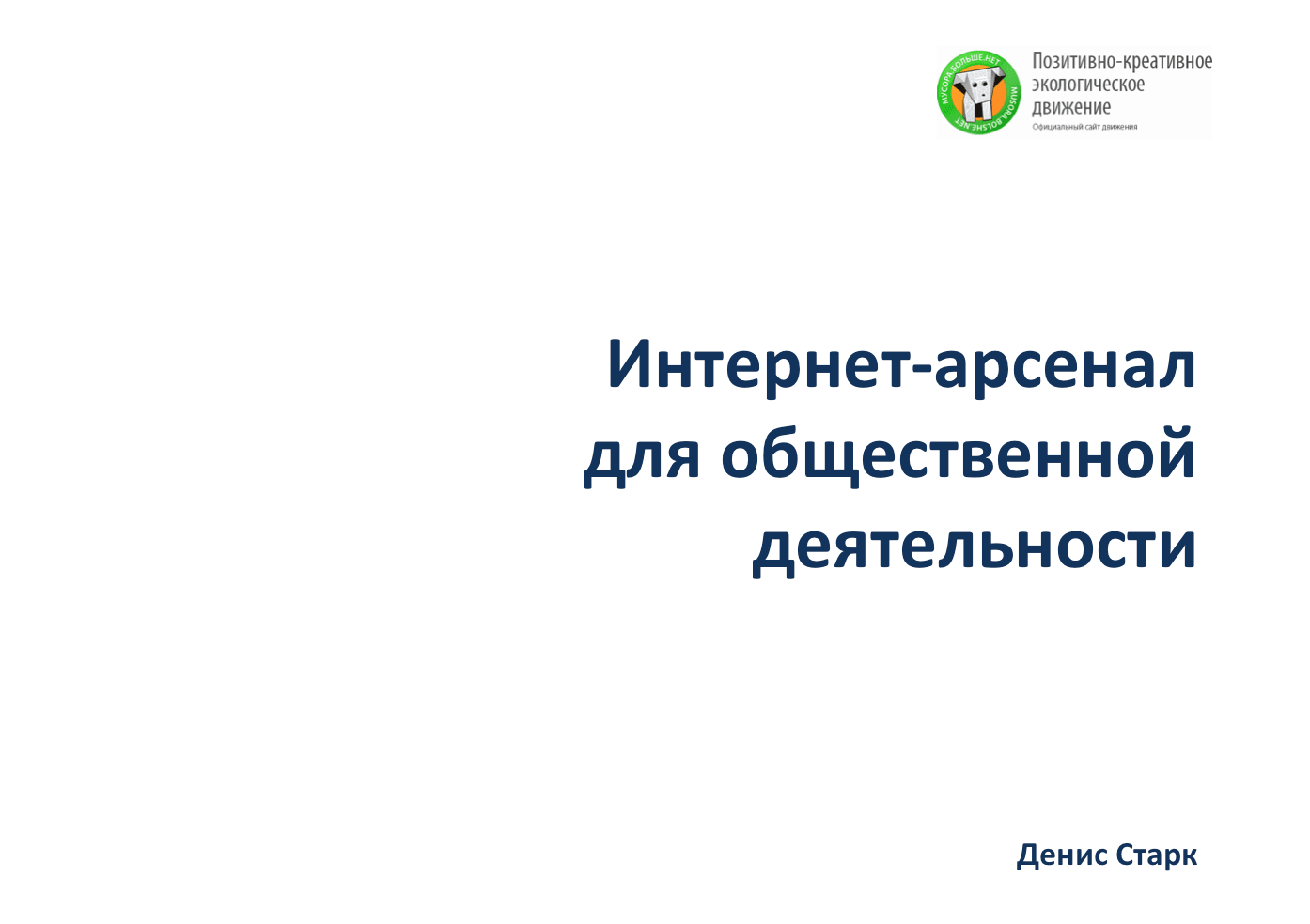 Денис Старк: Интернет-арсенал для общественной деятельности (вебинар и презентация) Основатель экологического движения Мусора.Больше.Нет Денис Старк рассказывает об Интернет-инструментах трех видов: для внутренней коммуникации в команде для коммуникации с внешней аудиторией для сбора средств
