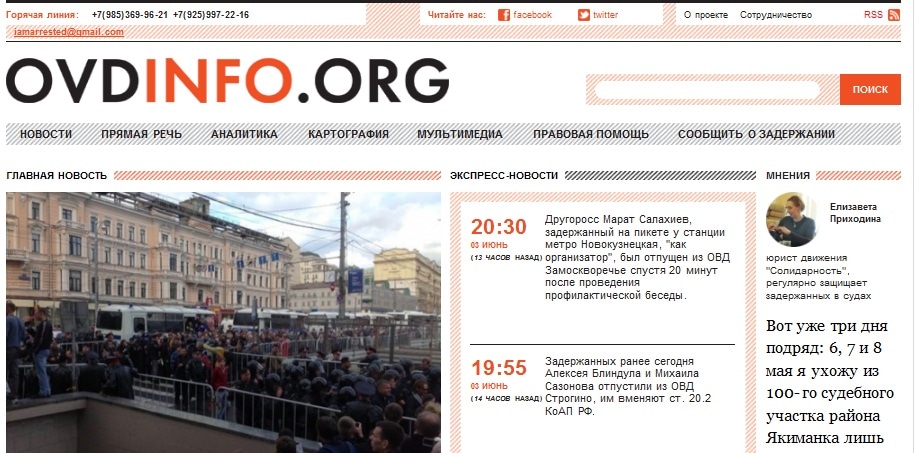 ОВД-инфо не только освещает и отслеживает события – проект пытается принять участие в судьбе каждого задержанного. Пользователи могут обратиться за юридической помощью – все необходимые контакты можно найти в разделе «Правовая помощь».