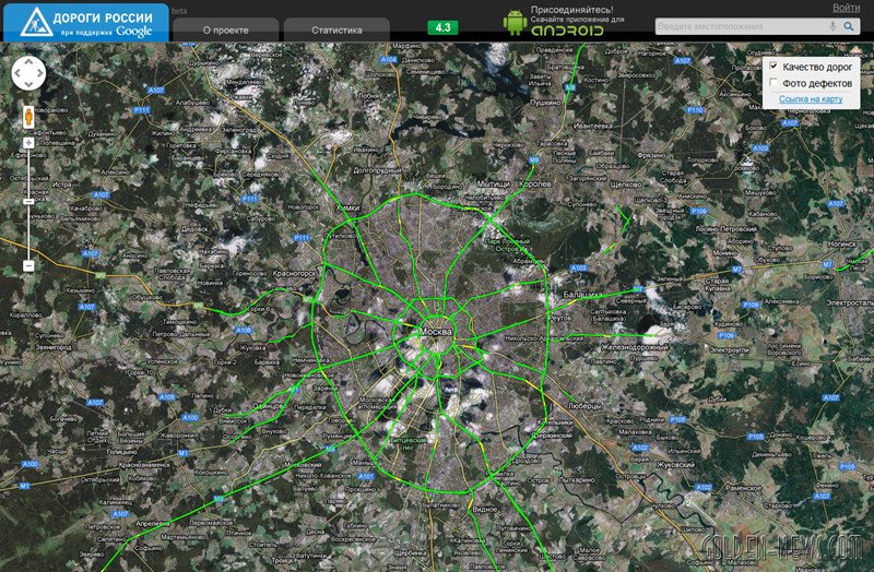 «Дороги России» — совместный некоммерческий проект Google Россия и Auto.ru. Сервис позволяет оценить дороги в режиме реального времени и создать «карту качества дорожного полотна».