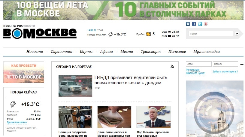 «ВМоскве» – это проект РИА Новости. На портале освещаются различные области жизни города и информация о погоде, пробках, культурных мероприятиях, больницах и паспортных столах.