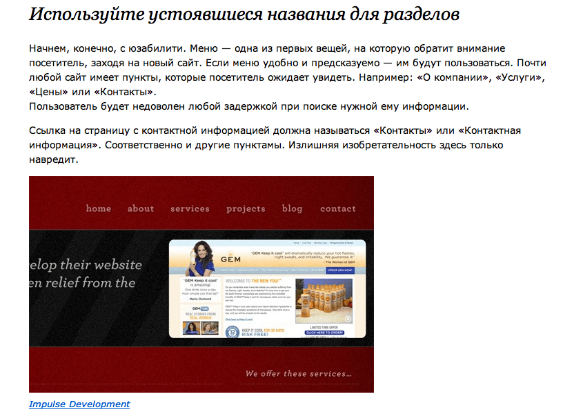 Горизонтальное меню – это тип навигации, с помощью которого пользователь попадает на нужные ему страницы. Создатели сайта должны приложить некоторые усилия для того, чтобы пользователям было легко ориентироваться на сайте, чтобы меню было универсальным, но в то же время отражало разделы сайта не обобщённо, а подчеркивая его уникальное содержание.