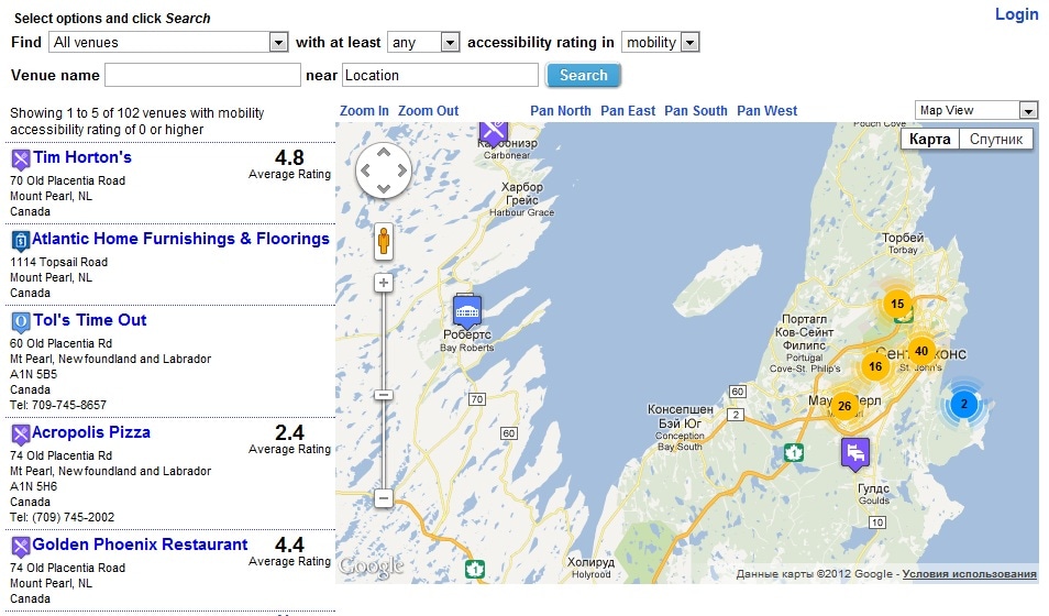 Оценка удобства использования места основана на 5-балльной системе, включающей основные необходимые критерии. Программа предоставляет также возможность самому оценить любое обозначенное на карте место, а в случае отсутствия такого, нанести его на карту.