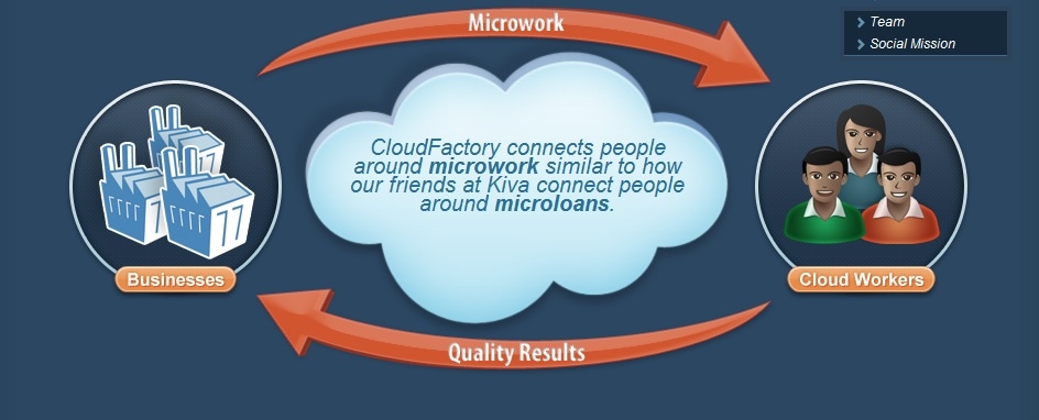 «CloudFactory» – проект, использующий краудсорсинг для выполнения простых, но трудоемких задач. Благодаря приложению каждый может выступить в роли преуспевающего фабриканта, став обладателем собственного конвейера, на котором роботы трудятся вместе с живыми людьми.