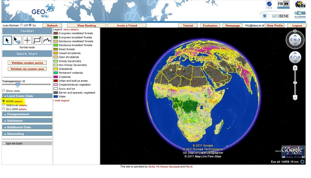 Приложение Geo-Wiki.org использует набор инструментов для получения от пользователей наиболее точной информации, которая может быть весьма полезна во многих научных исследованиях, в частности, мониторинге вырубки лесов и наблюдении климатических изменений.