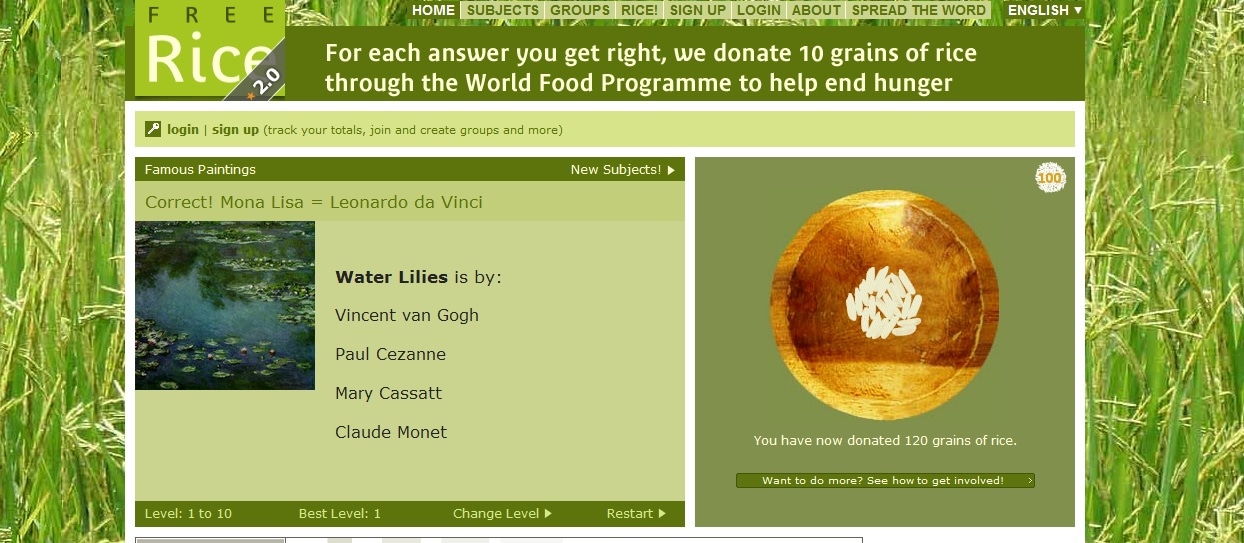 Freerice делает историю интернета. Это блестящий пример того, как можно просто и весело использовать возможности сети для решения самых актуальных мировых проблем.