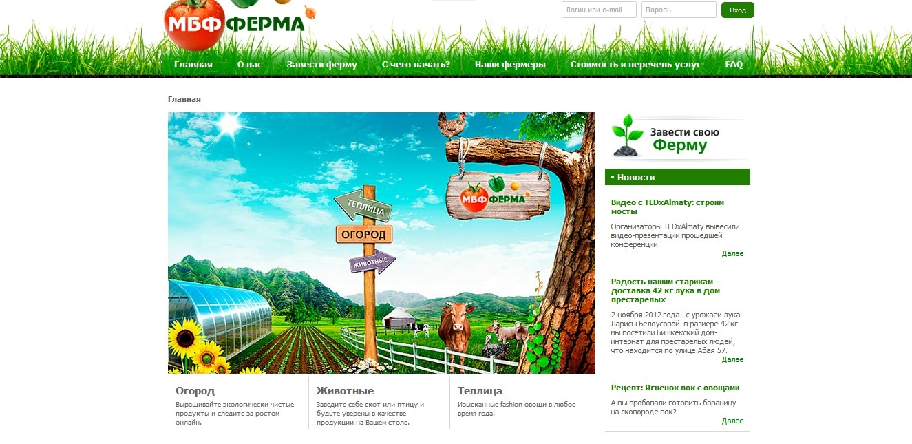 Новый проект «МБФ Ферма» предоставляет киргизским пользователям Интернета возможность управлять своей виртуальной фермой, не выходя из дома. Все это напоминает некогда популярную сетевую игру. Разница в том, что где-то в далекой Чуйской области самый настоящий фермер выполняет ваши указания по выращиванию культур и разведению животных, а полученные свежие и экологически чистые продукты доставляются прямо к порогу вашей двери.