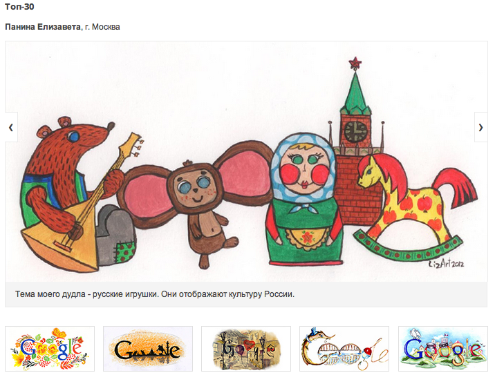Дудл – необычная праздничная версия логотипа домашней страницы Google. В сентябре мы анонсировали конкурс Google «Мой город – моя страна». Сейчас отбор рисунков закончен и каждый желающий может проголосовать за понравившийся рисунок.