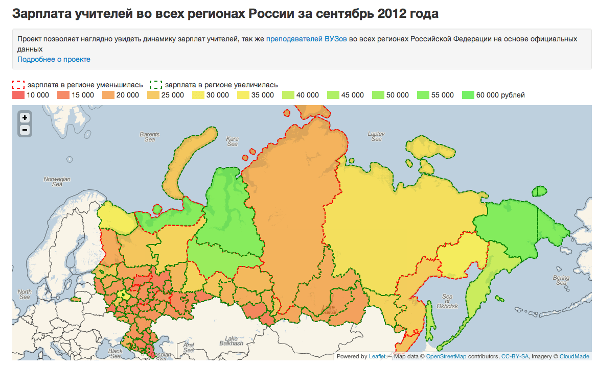 Проект только появился в Сети, поэтому пока мы можем говорить о реализации первой части задуманного. Анализ изменений заработных плат учителей еще впереди.