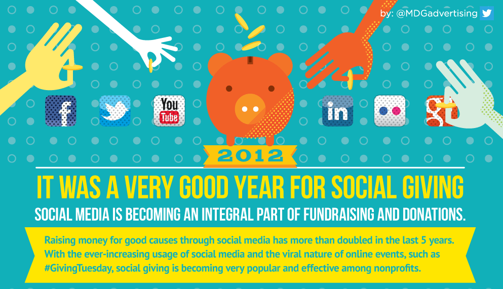 Социальные медиа изменили не только наш образ жизни – они влияют на то, как мы жертвуем. Социальные сети настолько изменили работу благотворительных фондов, то теперь обычные пожертвования часто называют «социальными» пожертвованиями. Инфографика показывает, что 98% американских неправительственных организаций имеют сообщество в Facebook, 74% – имеют профиль в Twitter.ЧТо будет дальше? Дочитайте до конца.