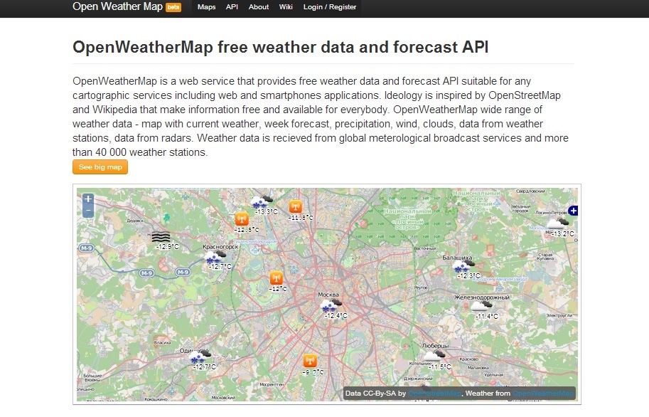 Из названия «OpenWeatherMap» сразу становится ясна специализация ресурса. Тема погоды животрепещущая и актуальная в наше непредсказуемое время, когда природа преподносит все больше сюрпризов. Проект был инициирован группой энтузиастов, которые обозначили в качестве главной ценности свободную информацию. Их подталкивала информационная революция, главная предпосылка которой – стремительное падение стоимости хранения огромных объемов информации. У такого явления есть и отрицательные последствия: информации становится слишком много, люди плавают в Мертвом море, и все попытки углубиться в истинную суть вещей приводят к безрезультатному выталкиванию обратно. В случае с «OpenWeatherMap» свободная информация становится еще и полезной, ведь оперируют пользователи максимально достоверными данными, практически фактами.