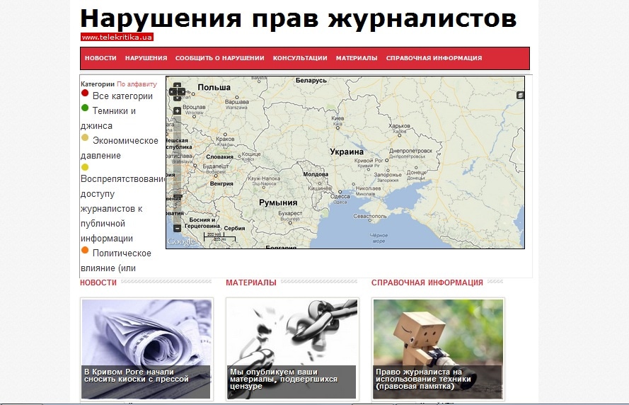 Для журналистов подобные проекты – это не просто средство защиты от нарушения своих прав, но и возможность разместить материал, не пропущенный цензурой. На сайте можно найти справочные материалы, как нужно вести себя в той или иной ситуации, а также раздел юридической консультации. Существует карта нарушений, построенная все по тому же принципу заполнения, основанном на технологии краудсорсинга. Каждый может сообщить о нарушении своих прав, будь то физическое давление или запрет на доступ к информации. Все сообщения отмечаются на карте только после тщательной проверки модераторами.