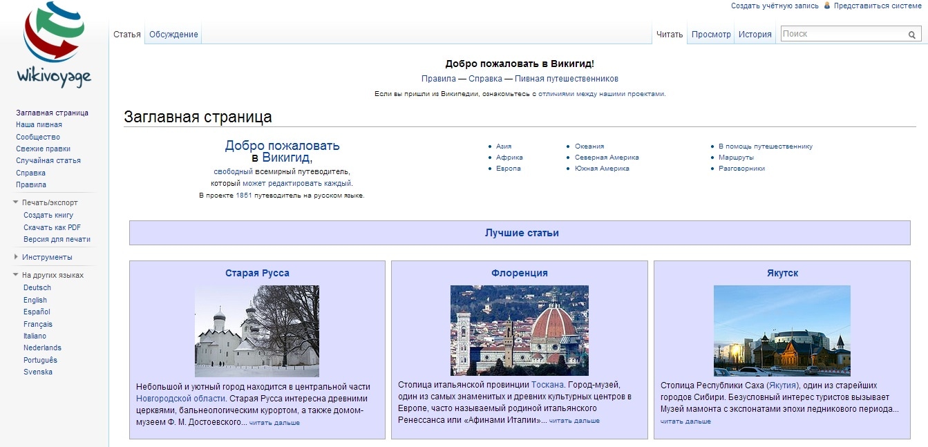 И.Д.: Это не совсем так. Для «Wikimedia Foundation» проект «Wikivoyage» новый и в какой-то степени экспериментальный. В 2003 году супружеская пара из Канады Эван и Мишель Продрому основали «Wikitravel». В таком формате ресурс просуществовал до 2006 года, пока не был продан компании «Internet Brands».