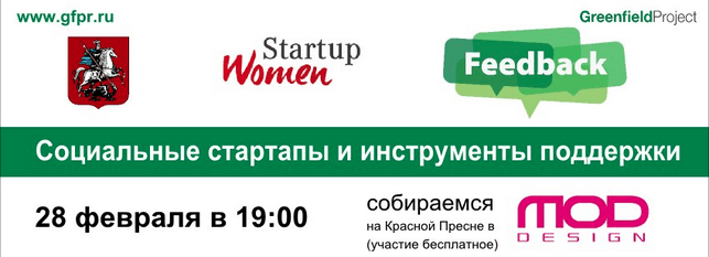 28 февраля в центре MOD Design пройдет Feedback, посвященный социальным стартапам. О том, тяжело ли это, и насколько эффективна государственная поддержка, мы поговорим с представителями проектов и организаций их поддерживающих. Со-организатором Feedback-а выступит площадка StartupWomen.