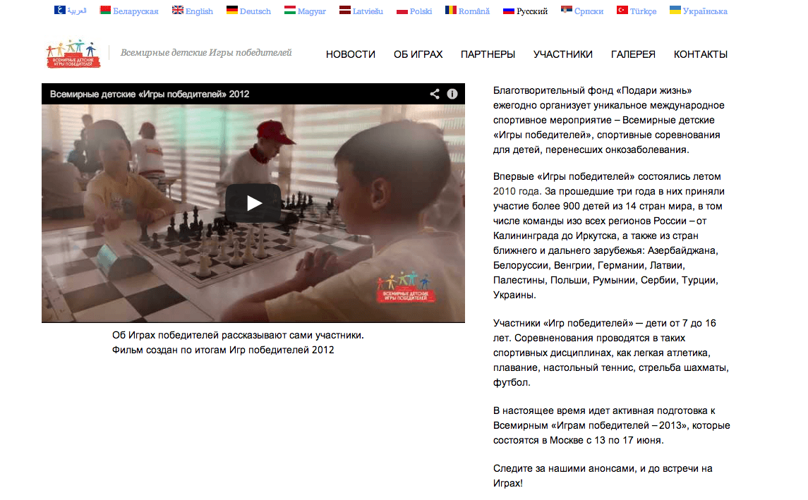 В июне состоятся четвертые «Игры победителей» — самый масштабный реабилитационный проект фонда «Подари жизнь», в котором принимают участие дети, победившие онкозаболевания. Фонд привлекает волонтерскую помощь IT-специалистов для развития сайта проекта.