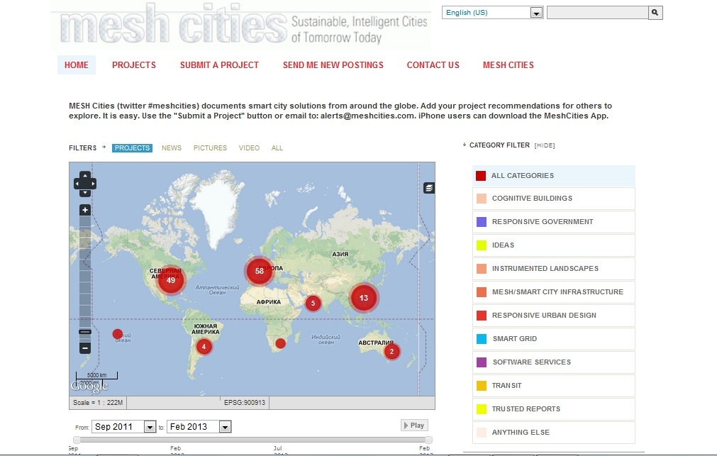 На интерактивной карте «Mesh Cities», созданной на основe платформы «Ushadidi», подобных проектов больше сотни. Сервис представляет собой справочник интересных идей, перспективных приложений и технологий. И пускай их пока не так много, изучение имеющихся уже обогатит вашу голову новыми мыслями, которым можно дать самый нестандартный ход.