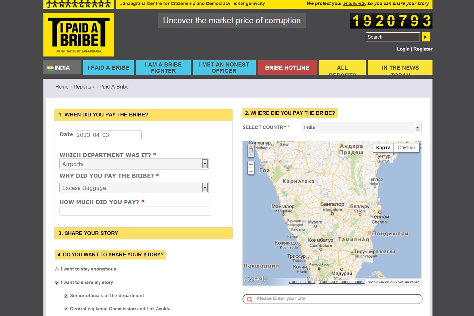 Индийский сервис не предложил решение этих проблем, однако они поблекли на фоне его массовости и основательности подхода. «I Paid A Bribe» – это не очередной счетчик, а сложный проект, имеющий возможность реально повлиять на положение дел.