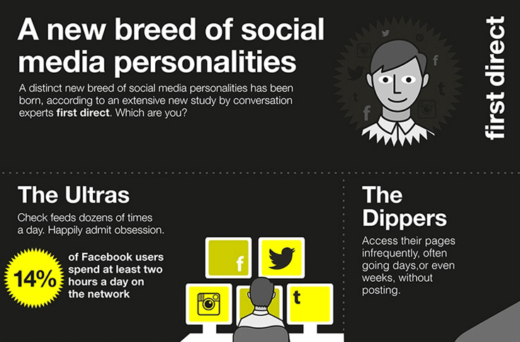 Онлайн-банк First Direct создал инфографику, в которой показаны 12 типов пользователей социальных сетей и шаблоны их поведения.