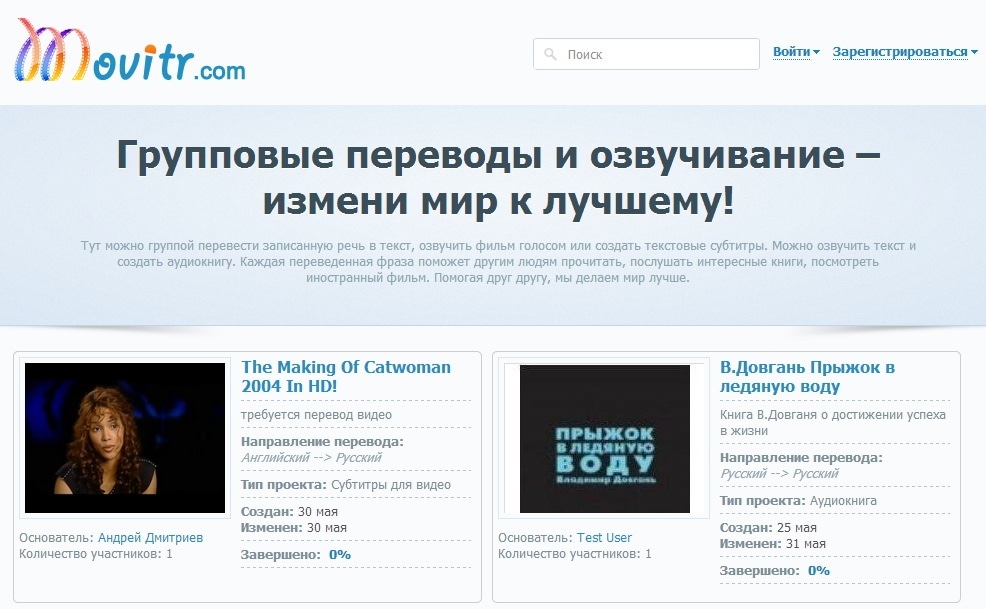 На этот раз участники будут работать с видео: всего представлено 4 задания, включая перевод ролика, его озвучку и написание субтитров. Идея проекта далеко не новая, но вот сами технологии, используемые им, заслуживают внимания. Система универсальна для любых типов перевода — от инструкций по йоге до популярных сериалов.