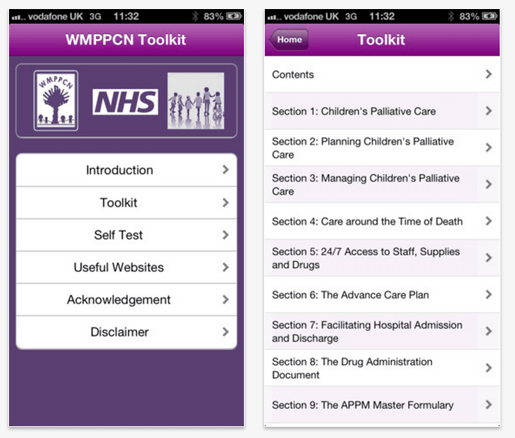 West Midlands Paediatric Palliative Care Network Toolkit (WMPPCNT) – это бесплатное приложение для iPhone, разработанное в Великобритании, с помощью которого можно смоделировать все ситуации, которые могут произойти с умирающим ребенком и гарантировать достойную и спокойную жизнь столько, сколько это возможно и оперативно отреагировать на любую из них.