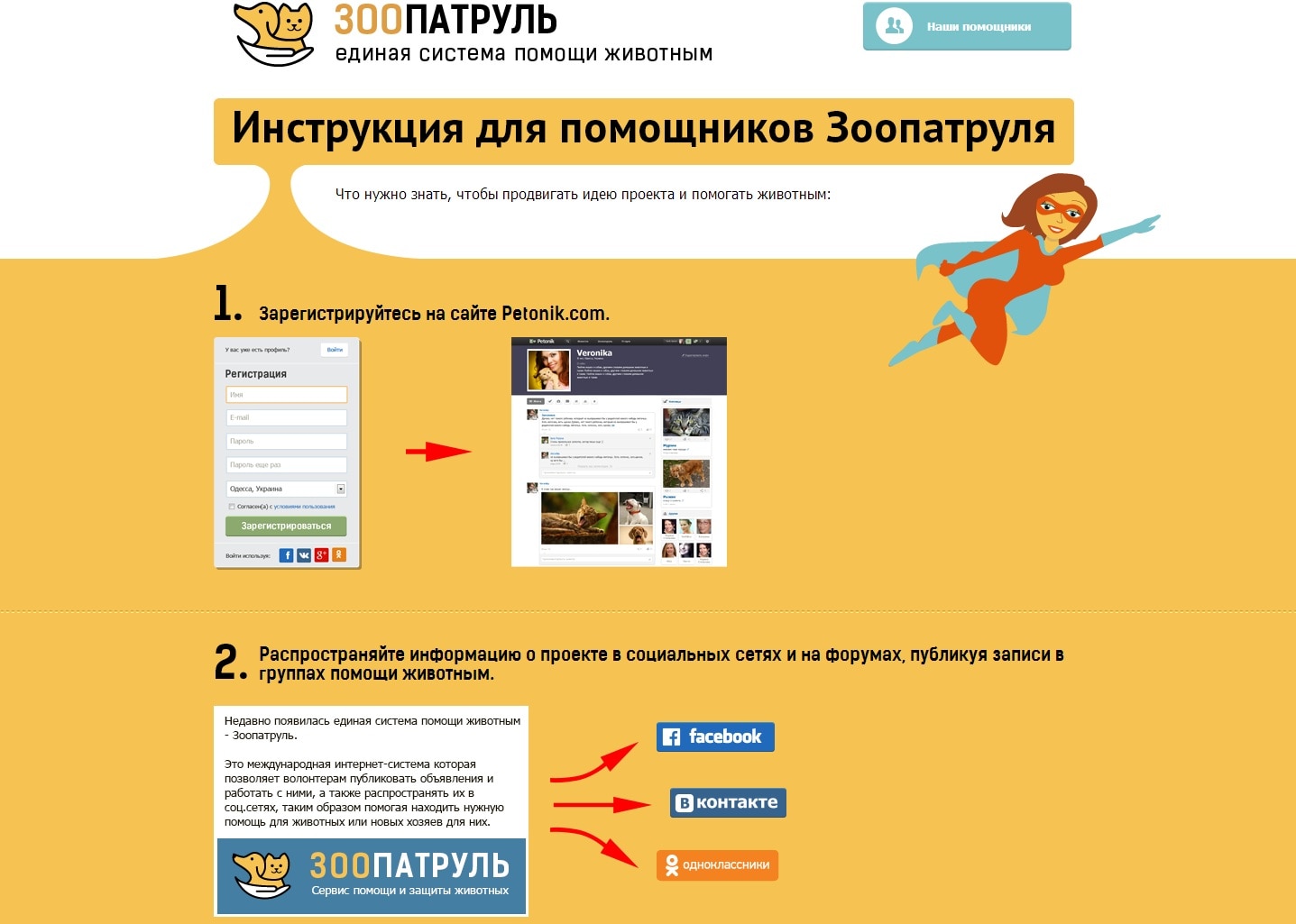 На сайте представлены формы объявлений для привлечения новых участников – неравнодушных граждан, готовых помочь своим меньшим братья. Руководители проекта предупреждают о том, что среди пользователей могут быть догхантеры. Не сообщайте открыто контактные данные и пишите модераторам о любой подозрительной активности. Пока что сайт функционирует в национально масштабе, привлекаются также жители стран СНГ, но создатели планируют дальнейшую экспансию проекта.