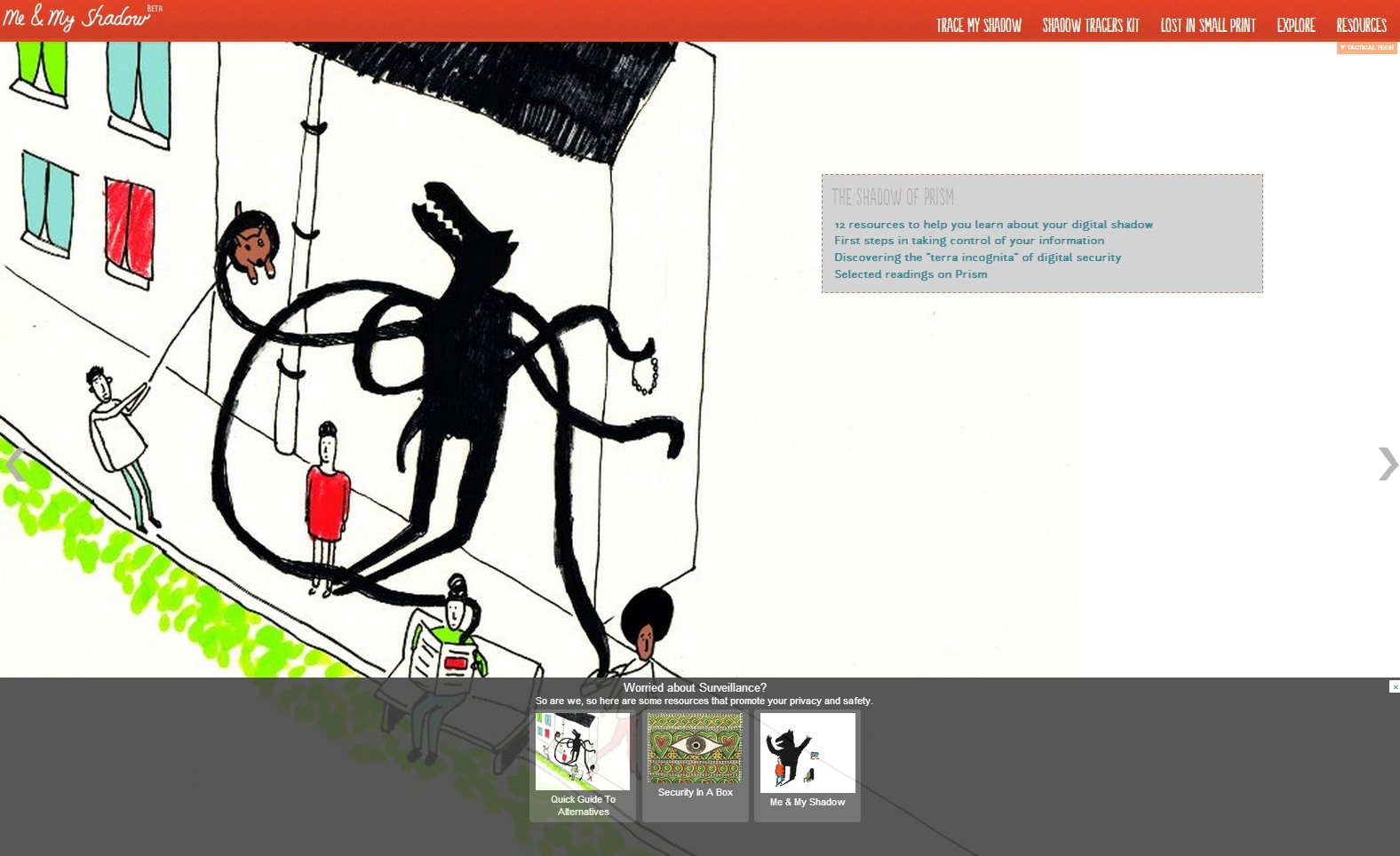 Вопрос конфиденциальности данных в Сети — одна их самых горячих тем, подогреваемая активностью тайных спецслужб и отчетами Google о государственных запросах на пользовательскую информацию. Ввиду сложившейся ситуации создатели проекта «Me and My Shadow» решили обезопасить рядового пользователя от незаконного посягательства на свои права и предоставили ему защитные инструменты, чтобы он смог «минимизировать» собственную тень.