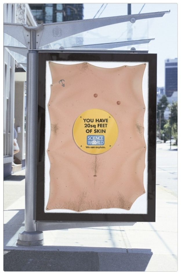 Рекламные щиты «Science World» – наука на грани экстрима. Метры волос на автобусных остановках, растворенные в кислоте стекла, литры слюны и лоток с наполнителем для тигра Раджы – все это живые экспозиции различных научных фактов, сопровождаемые авторской надписью «We Can Explain»– «Мы можем это объяснить».