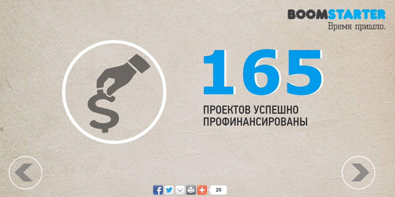 Также, Boomstarter стал стартапом года 2012 в номинации «Лучший социально значимый проект».