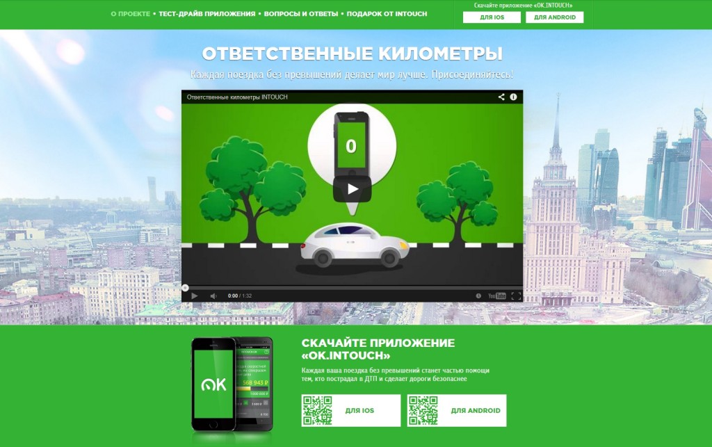 Не секрет, что ситуация на дорогах нашей страны сегодня очень далека от идеальной. Компания INTOUCH не хочет оставаться в стороне. Мы чувствуем, что у нас есть силы и возможности участвовать в решении этой проблемы вместе с теми, кому не все равно. Именно поэтому мы запустили проект «Ответственные километры».