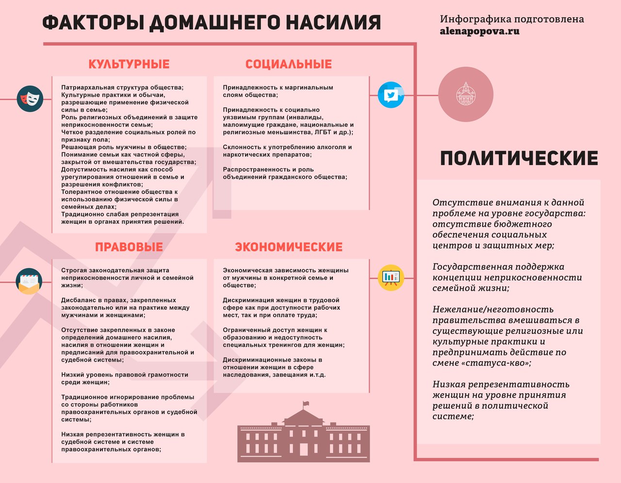 Для сокращения случаев насилия необходимо работать с факторами риска. Одни факторы связаны с лицами, совершающими насилие, другие – с жертвами насилия, а третьи касаются и тех, и других. Факторы риска как насилия со стороны интимного партнера, так и сексуального насилия включают: