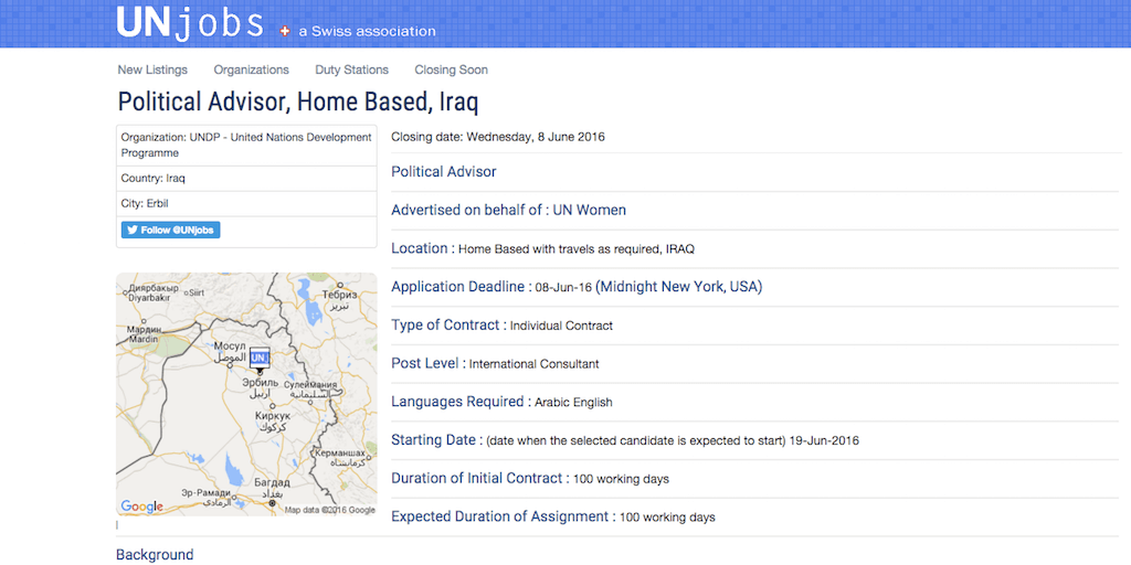 Швейцарская организация, которая делает этот сайт, не является официальным представителем ООН, однако собирает огромное количество информации о том, каких специалистов ищут в структурах и подразделениях Организации объединенных наций. Тем обиднее, что функционал поиска по базе достаточно скудный.