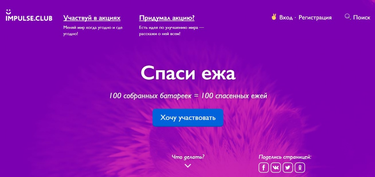 Участие в акции подробно расписано по шагам. Например, в инициативе «Спаси ежа» волонтерам предлагают собирать батарейки, чтобы спасти лесной покров и животных.