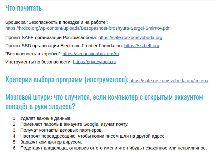 Фрагмент структурированного общего документа, используемого на тренинге по комплексной безопасности.
