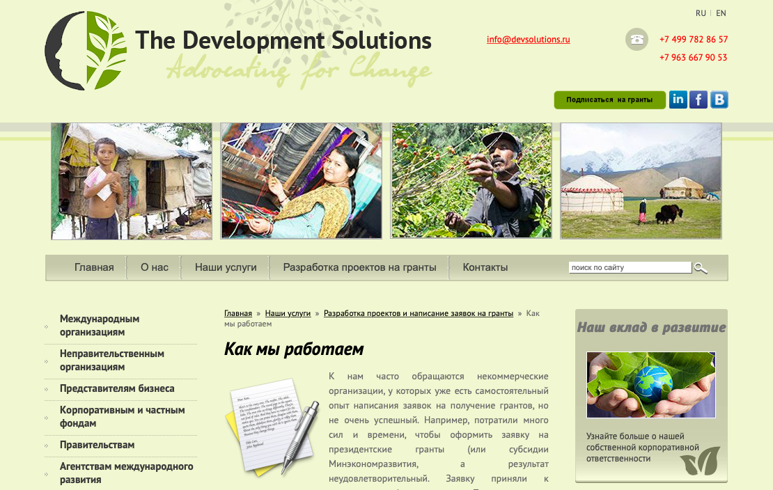 Услуги специализированных агентств, которые подготовят конкурсную заявку любому обратившемуся. Например, Девелопмент Солюшинс.