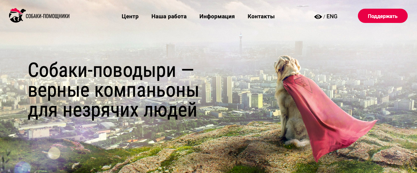 На горе сидит собака в розовом плаще супергероя и смотрит на город. С этого изображения началась работа над новым сайтом учебно-кинологического центра «Собаки – помощники инвалидов». Это одна из двух школ в России, в которых тренируют собак-поводырей. Нужно было не только изменить портал центра визуально, но и собирать через него пожертвования. Помочь решить эти задачи вызвалось брендинговое агентство «Сова», с которым команда центра познакомилась благодаря программе «Пасека».