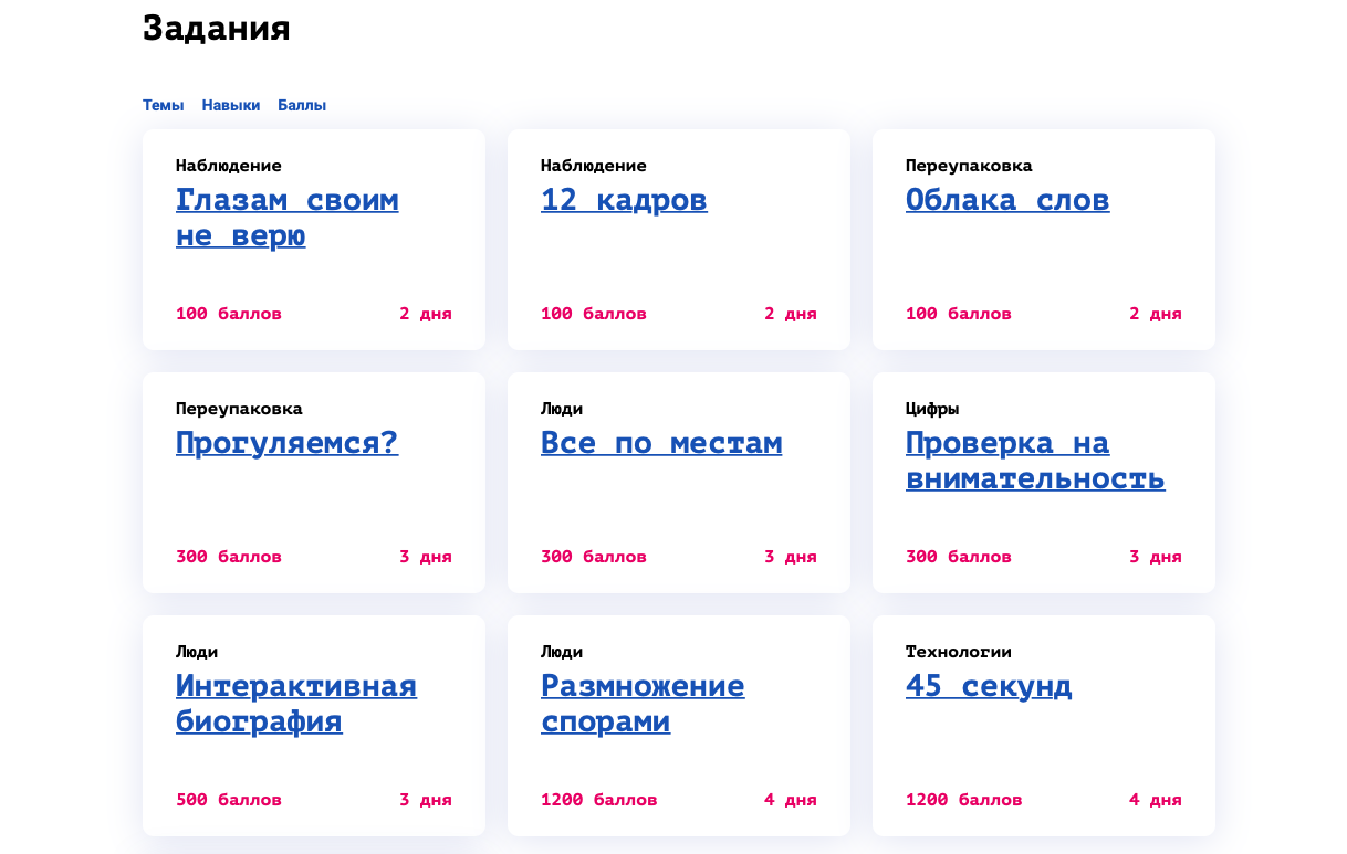 Преимущество в том, что ученики развивают навыки, которые будут полезны для будущей профессии. Вместо стандартного сочинения на общую тему по русскому языку можно предложить детям поучаствовать в «Кубке мультимедийного вызова», который уже запущен платформой. Задача – писать тексты и «упаковывать» контент в различные мультимедийные форматы.
