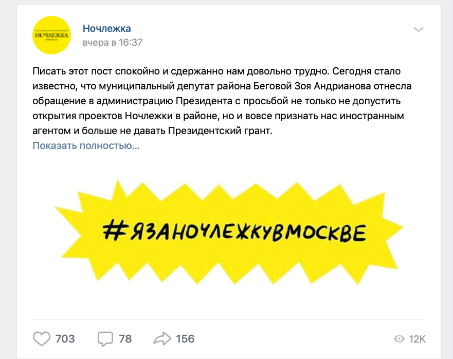 «Это нормально. Мы не ставим перед собой задачу убедить всех, что «Ночлежке» можно доверять. Равно как и не хотим заставить всех в обязательном порядке идти и помогать тем, кто оказался на улице. Главный принцип нашей коммуникации – уважение. Но эта очевидная идея становится проблемой, как только мы встречаем в сети тех, чье мнение отличается от нашего. Самое обидное лично для меня – останавливать или банить людей, которые поддерживают «Ночлежку», но притом позволяют себе оскорблять оппонентов. И все-таки правило об уважении действует для всех». Мария Калинкина