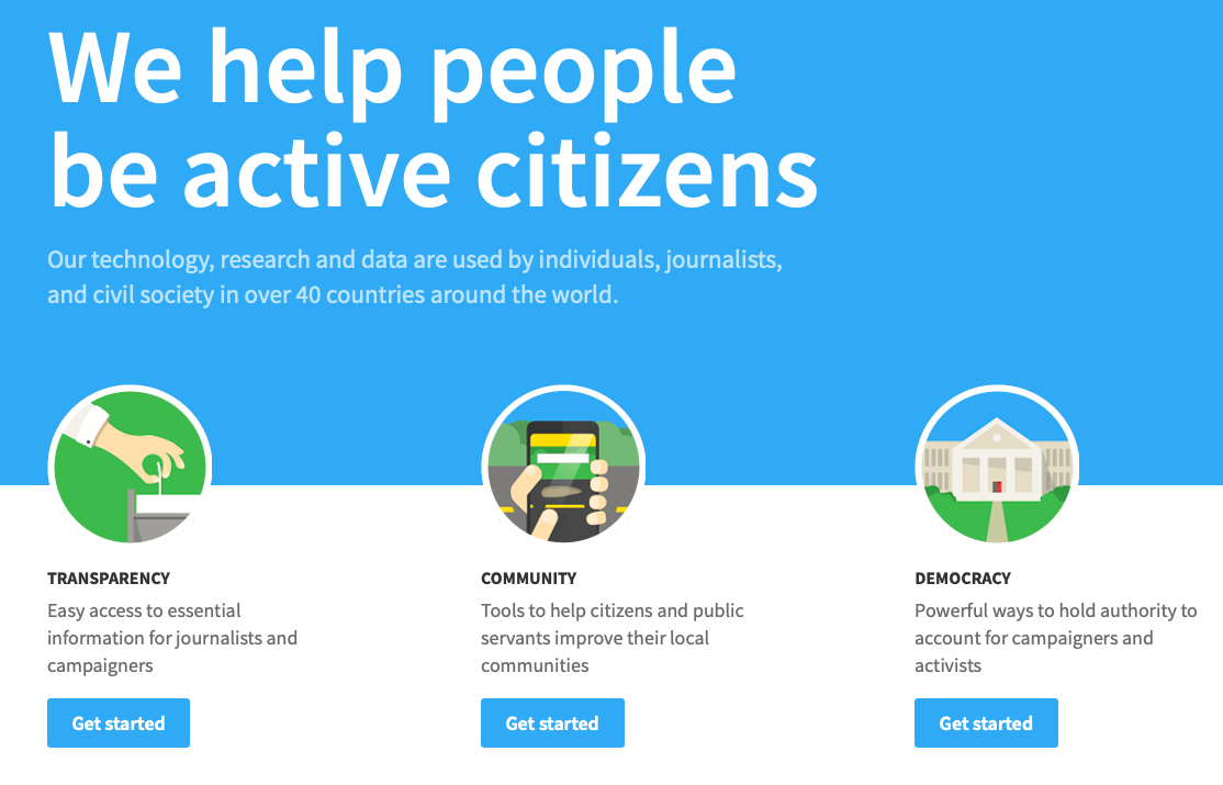 Также в 2007 году стартовал самый известный проект mySociety FixMyStreet. Это сервис, с помощью которого можно информировать местные органы власти в Соединенном Королевстве о различных проблемах. Житель видит яму на дороге, свалку, неработающий светофор, открывает FixMyStreet, выбирает на карте точку, где он столкнулся с проблемой, и отправляет сообщение городским службам.