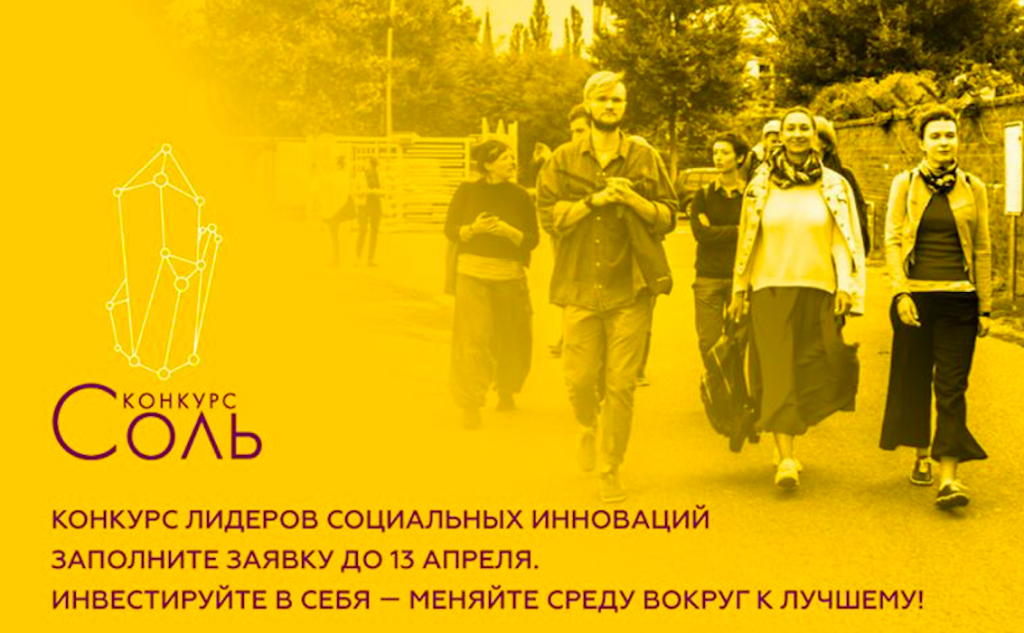 Центр содействия инновациям в обществе «СОЛь» ждет лидеров социальных инноваций для участия в конкурсе «СОЛь 2020». Задача конкурса – найти и поддержать лидеров социальных инноваций, создающих устойчивые системные решения социальных и экологических проблем. Прием заявок осуществляется до 13 апреля.