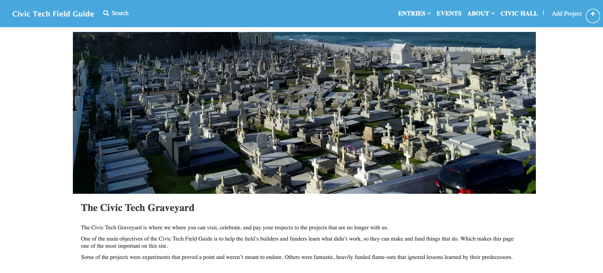 Ответу на этот вопрос посвятил свой доклад Мэттью Стемпек, президент и один из основателей Civic Hall – одного из самых значительных инкубаторов гражданских технологий в Америке. Чтобы лучше понять, как создавать устойчивые проекты, необходимо проанализировать структурные и организационные причины неудач. И поэтому Civic Hall запустил «Кладбище гражданских технологий», где собрал опыт таких неудавшихся проектов. Как обнаружилось, у этих проектов есть общие черты.