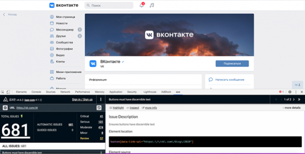 Для сравнения, сайт «ВКонтакте» содержит 41 критическую ошибку: