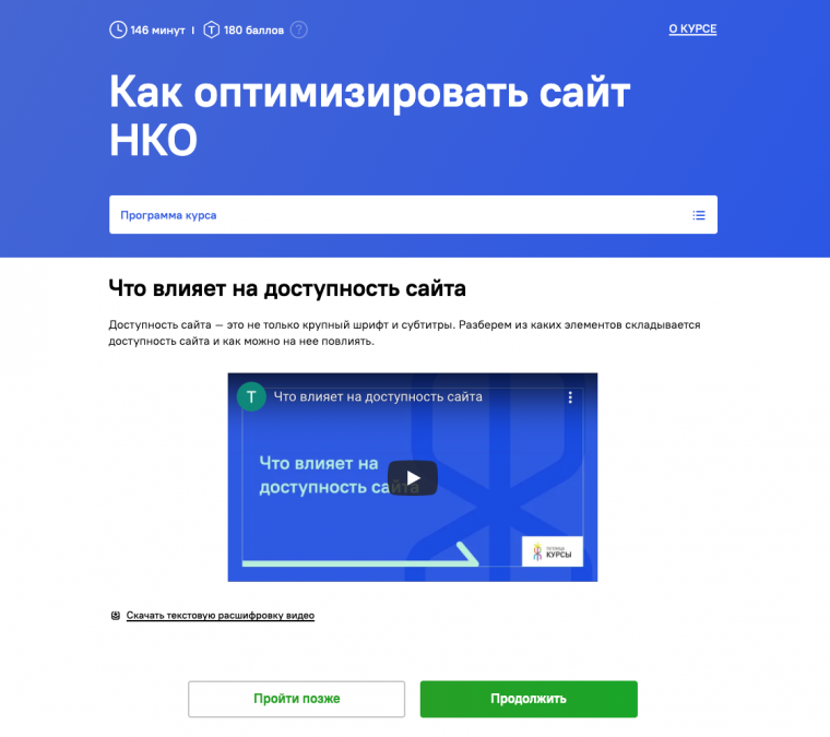 Команда проекта системно перерабатывает содержание курсов и усилила их с помощью тестов, заданий и дополнительных материалов. Короткие видео с промежуточной проверкой намного эффективнее, чем просмотр часового вебинара. В конце каждого курса есть итоговое задание, которое нужно выполнить для получения сертификата.