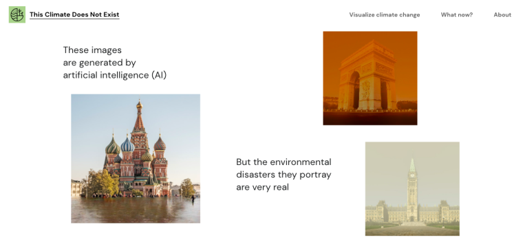 Проект ThisClimateDoesNotExist запустили исследователи из Квебекского института искусственного интеллекта Mila. Они считают, что многим людям проблема изменения климата кажется абстрактной, потому что природные катаклизмы случаются далеко от их дома. В итоге возникает психологическая дистанция и пропадает чувство личной ответственности. Если показывать людям изображения знакомых мест после наводнений или пожаров, дистанция будет сокращаться, и проблему изменения климата они будут воспринимать, как личную. «Вы можете представить, что катастрофа случится у вас во дворе?» — это главный слоган проекта ThisClimateDoesNotExis.