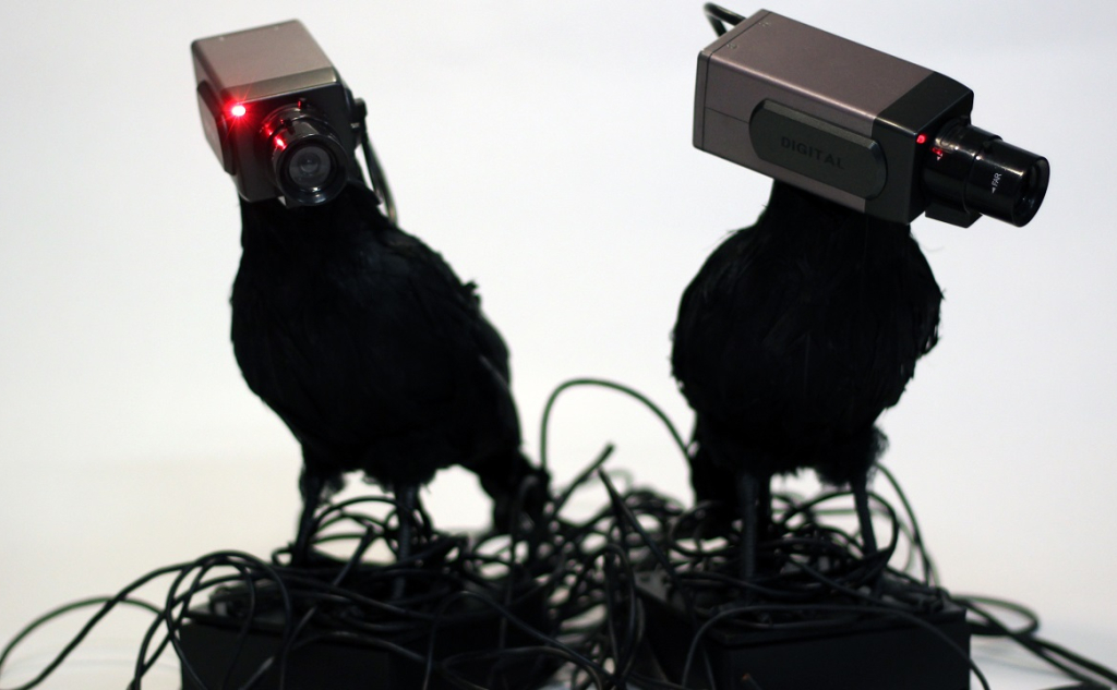 А вот стала им, я считаю, следующая их работа — panoptICONS. Камероголовые вороны, рассевшиеся на фонарях и в гнездах из сплетенных проводов, — по-настоящему пугающая персонификация городского видеонаблюдения. Дергающие сервоприводными головами, птицы-киборги следят за проходящими мимо, провожая их зрачками-линзами и неугасающими красными лампочками REC. Они словно Хугин и Мунин современного, дигитализированного Одина, посланцы всевидящей и недремлющей сущности, желающей контролировать всех и вся, превращая мир в прозрачную тюрьму-паноптикум.