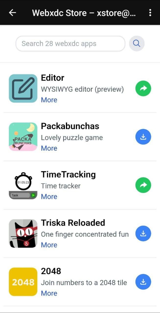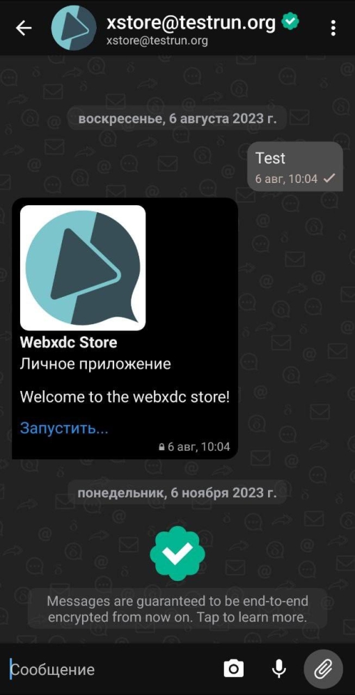 Хотя управление рабочими процессами не было заявлено ключевой функцией приложения, оно подходит и для этих целей. Например, в нем можно создавать и делиться приложениями webxdc, которые будут работать прямо в чате: календари, опросники, планеры и тд. Не нужно открывать браузер и ничего дополнительно скачивать. Достаточно написать боту [email protected], который пришлет каталог приложений.