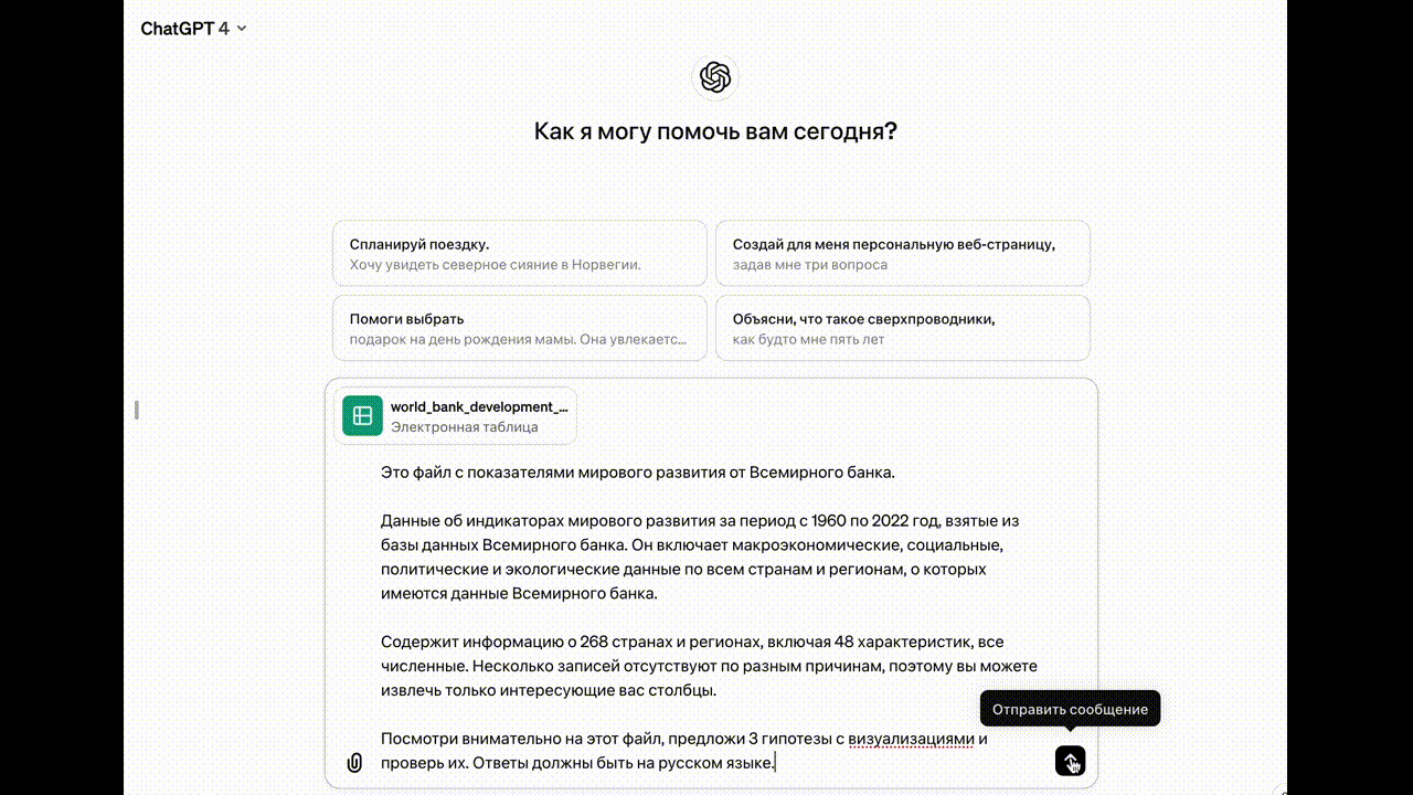 Числовые данные — фундамент, на котором строятся стратегии и принимаются решения. Для гражданского общества, занимающегося активистской деятельностью, работа с данными важна, чтобы усилить эффект от работы инициативы. Системы искусственного интеллекта, включая ChatGPT, предлагают мощные инструменты для работы с числовыми массивами и их визуализации. Они сделали доступным анализ данных для исследователей без специализированного образования и способны не только агрегировать и анализировать данные, но и выявлять в них неочевидные закономерности и инсайты.
