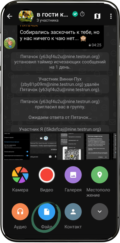 Затем в чате прикрепите вашу локацию с помощью «скрепочки» и выберите желаемое время, в течение которого вы хотите делиться локацией. Чтобы другие участники увидели вашу локацию, им тоже нужно активировать функцию трансляции локации.