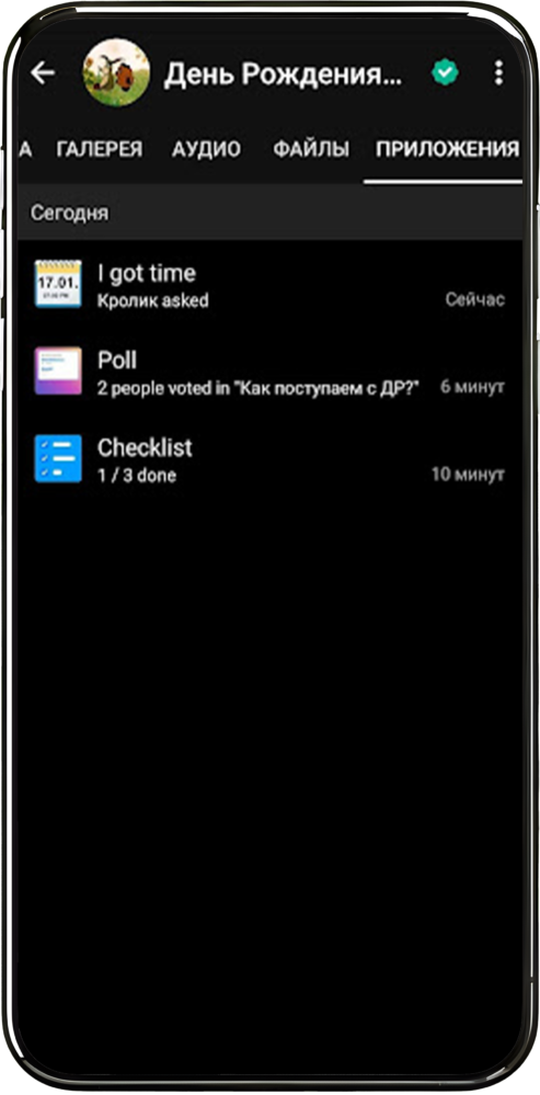 - Встроенные приложения: можно редактировать документы, отслеживать выполнение задач, создавать опросы и играть в тетрис, не покидая интерфейс мессенджера.