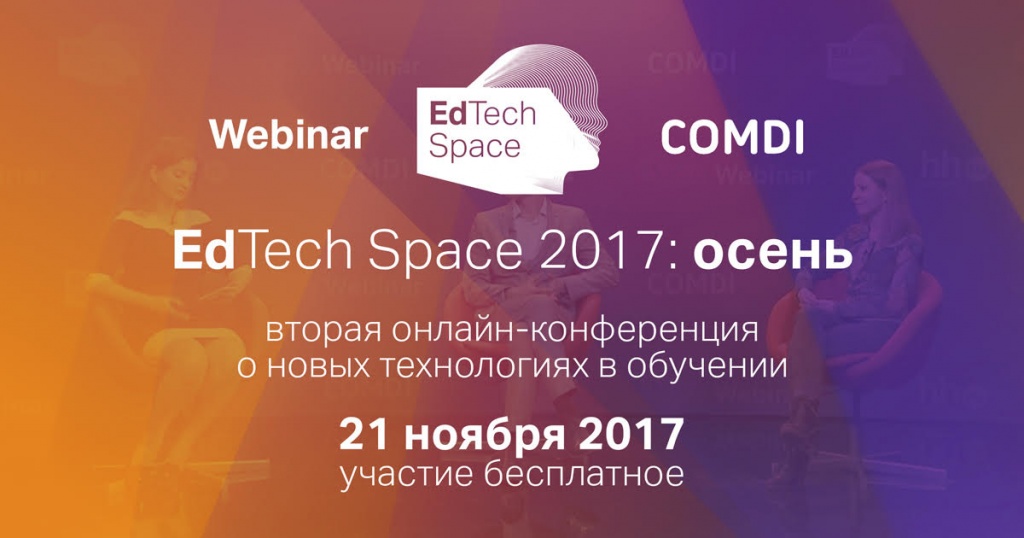 21 ноября 2017 года пройдет вторая онлайн-конференция EdTech Space, посвященная новым технологиям в обучении. Она будет интересна преподавателем, авторам учебных продуктов, в том числе и некоммерческих проектах, руководителям бизнеса, тренерам и it-специалистам.