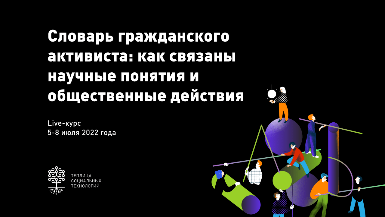 Теплица социальных технологий приглашает на live-курс «Словарь гражданского активиста: как связаны научные понятия и общественные действия». Live-курс пройдет с 5 по 8 июля 2022 года.