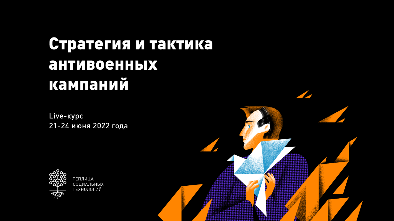 Теплица социальных технологий приглашает на live-курс «Стратегия и тактика антивоенных кампаний». Live-курс пройдет с 21 по 24 июня 2022 года.